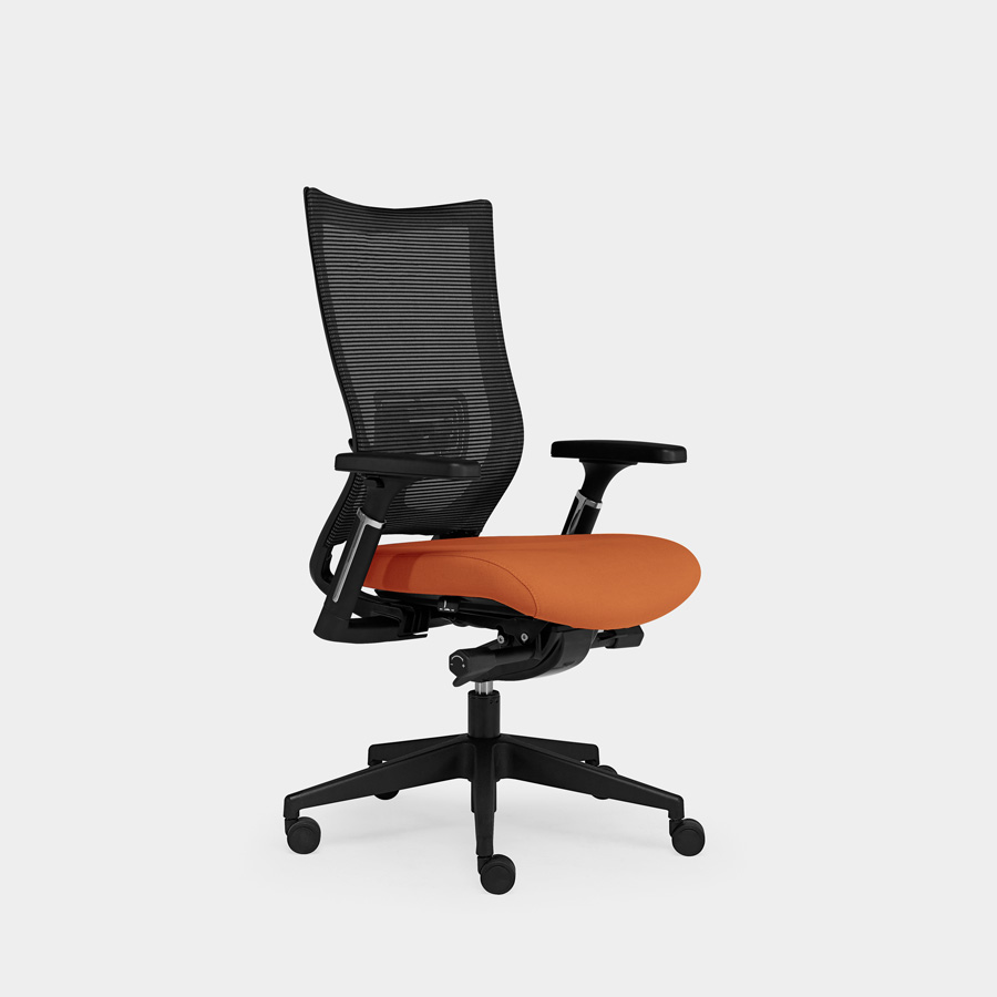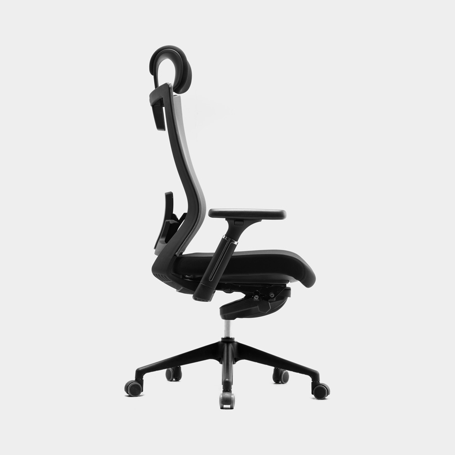 Uma cadeira moderna e ergonómica com sistema de bloqueio multi-posicional e regulador de tensão. O assento ajustável em profundidade e apoio lombar proporciona uma postura mais correta e saudável.