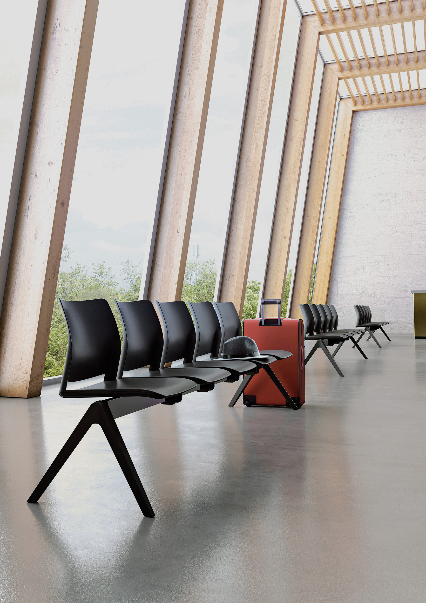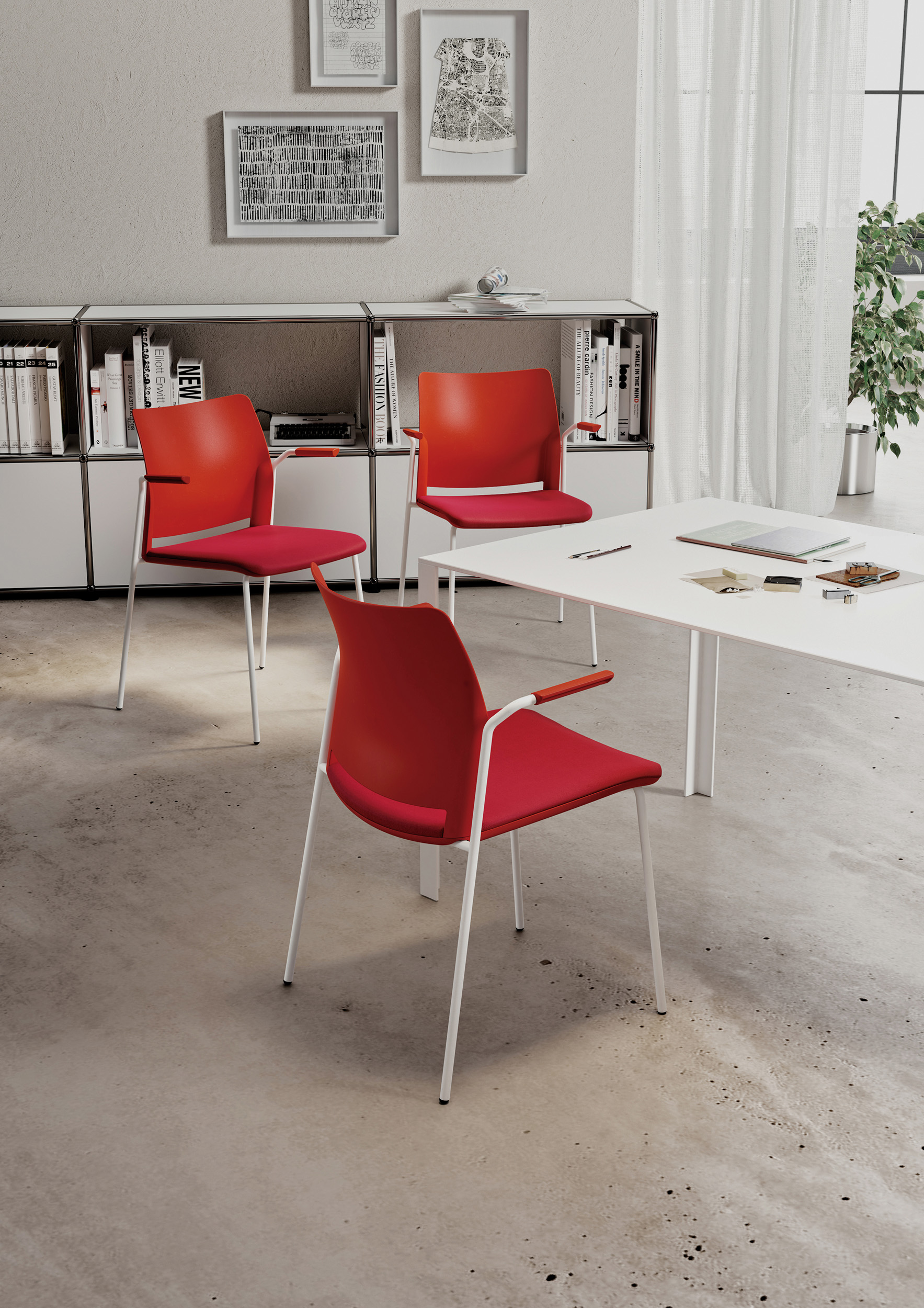Baseada num casco de plástico, a família Alpha é composta por: uma versão de quatro pés, trenó, rodada, banco e tamborete. Por isso mesmo adapta-se a vários ambientes e necessidades, desde zona de espera, trabalho e conferência.