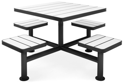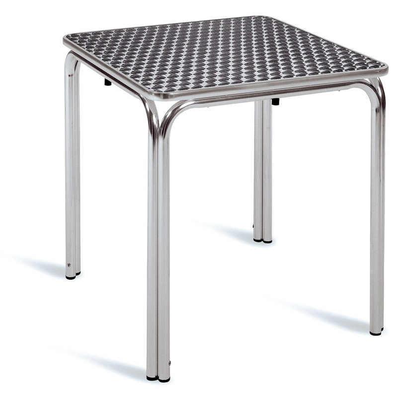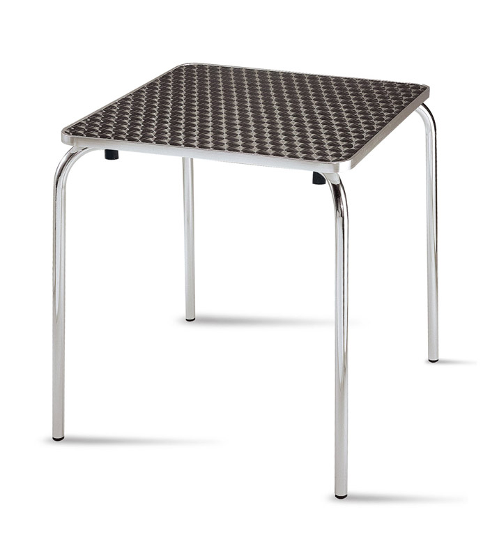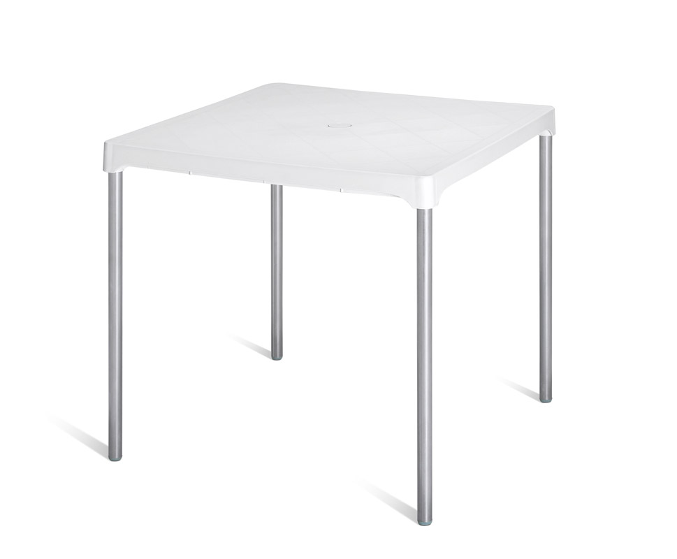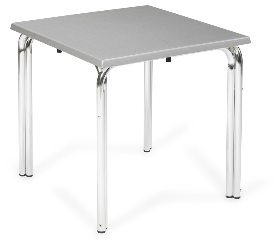 Mesas para exterior/esplanada. Estrutura em aço ou alumínio e tampos em medula, alumínio, compacto fenólico, MDF ou polipropileno. Disponível em várias medidas e cores.