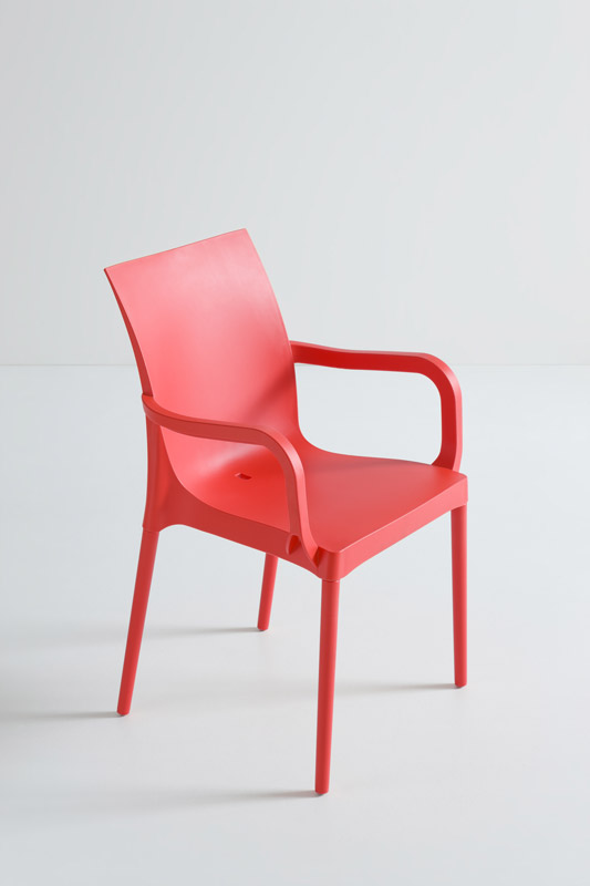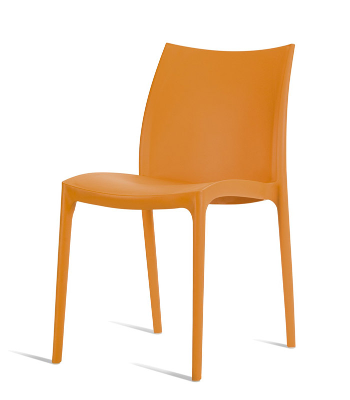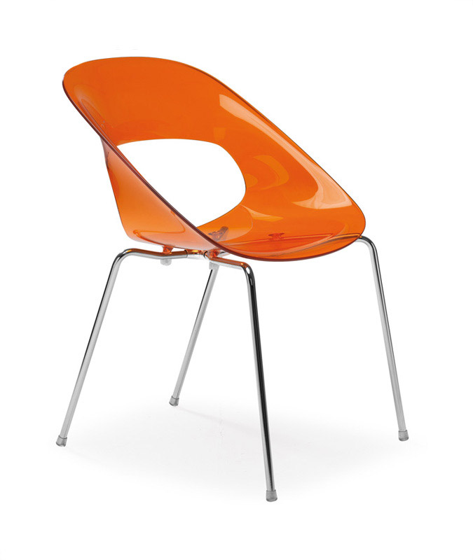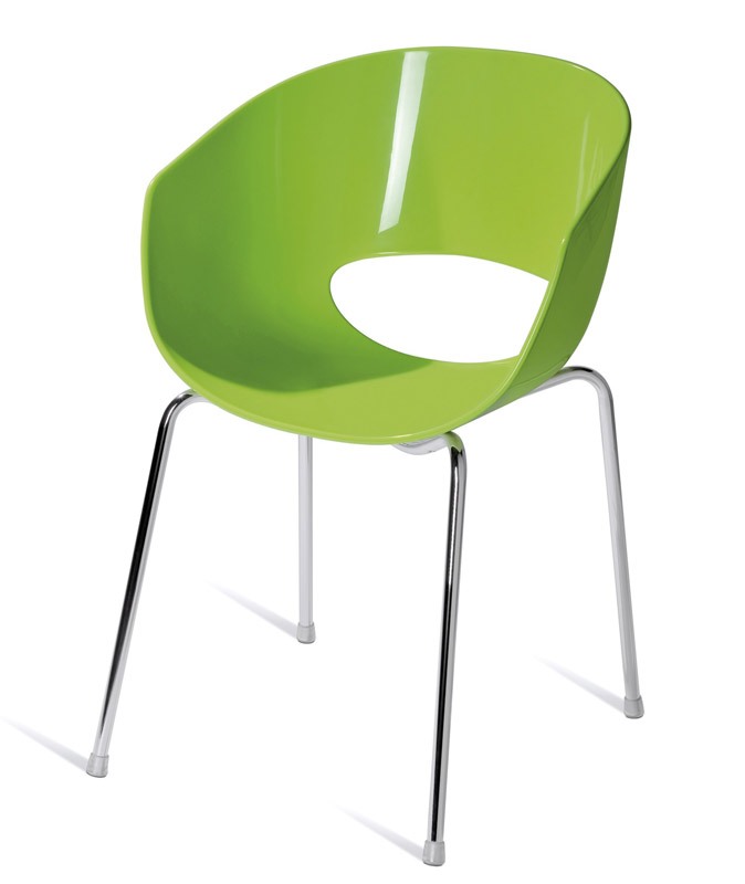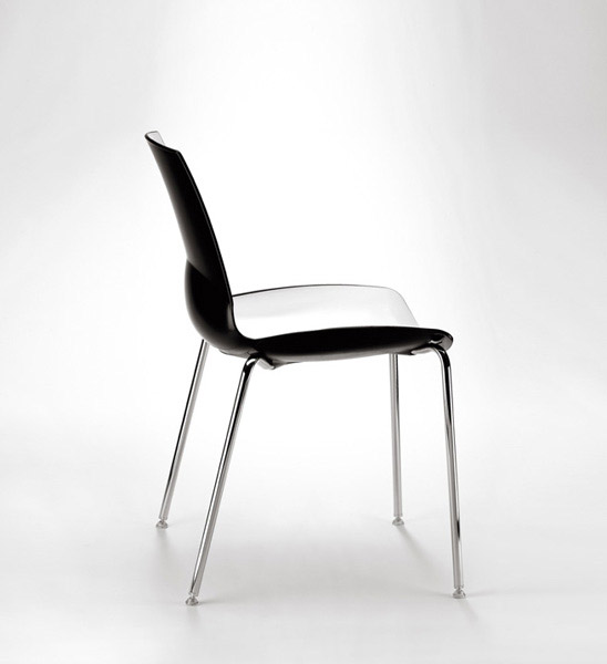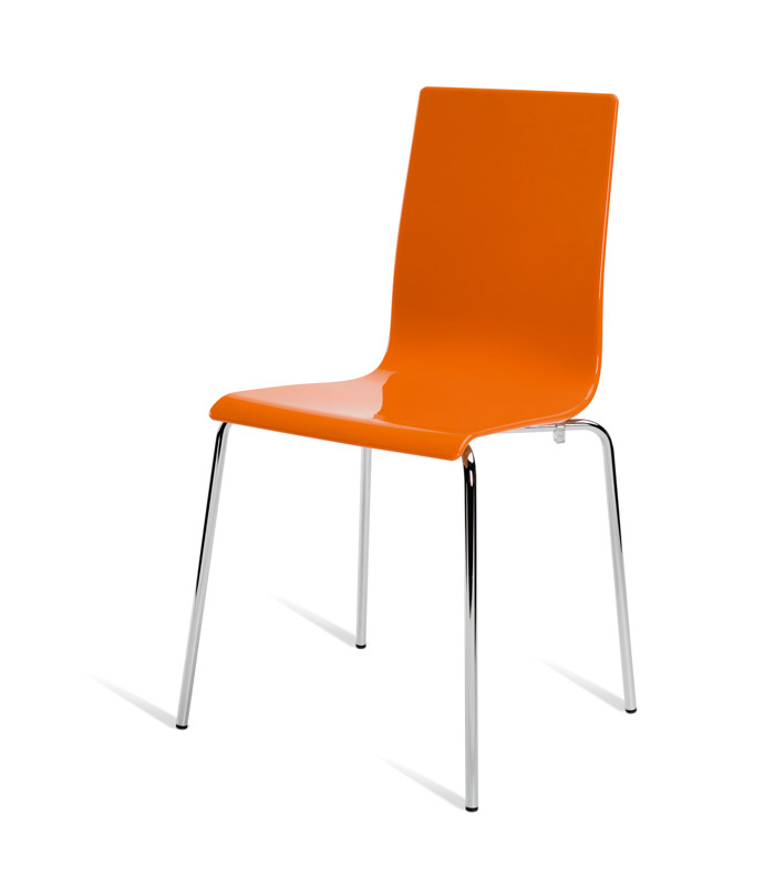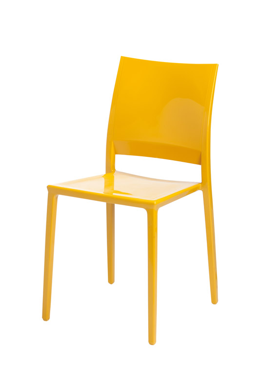 Cadeiras para interior e exterior. Estrutura metálica pintada, polipropileno, policarbonato, cromada ou inox. Assento e/ou costa em polipropileno, tecnopolímero, acrílico ou policarbonato. Disponíveis em várias cores.