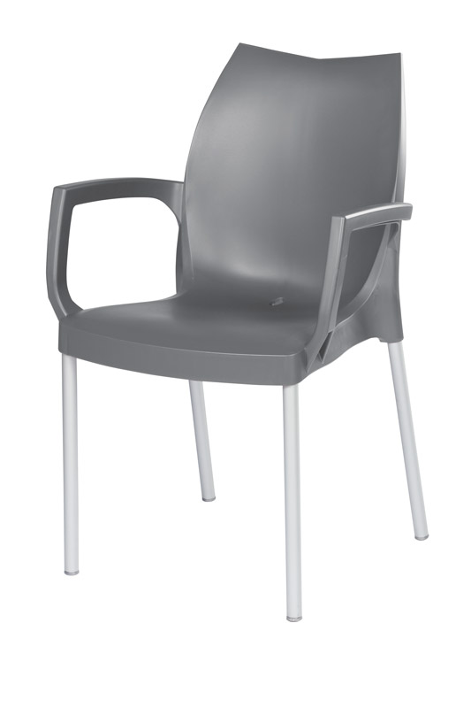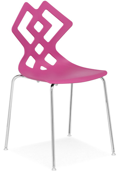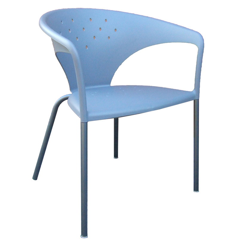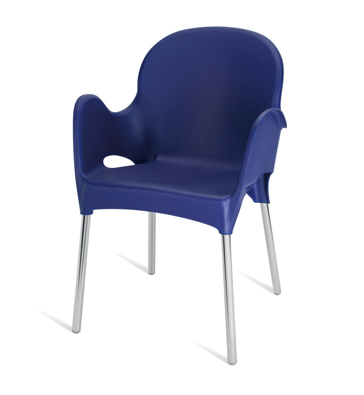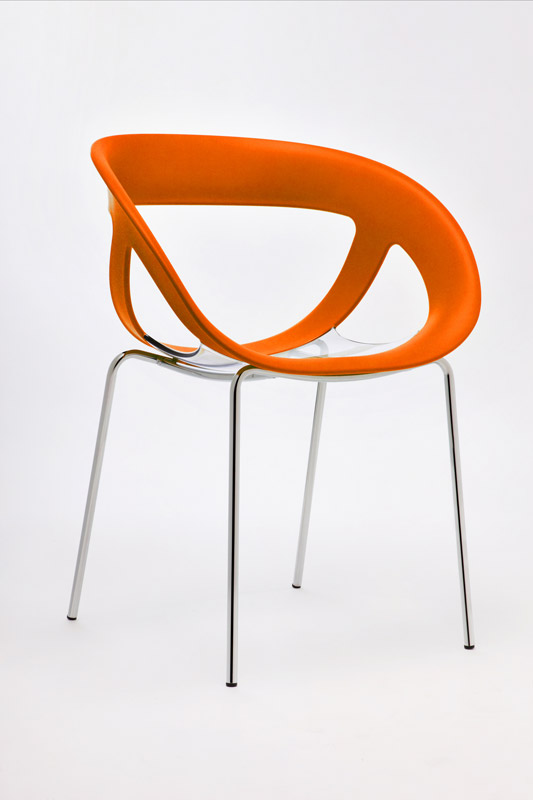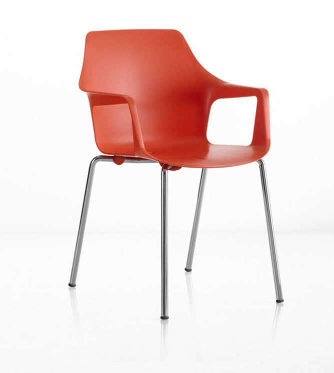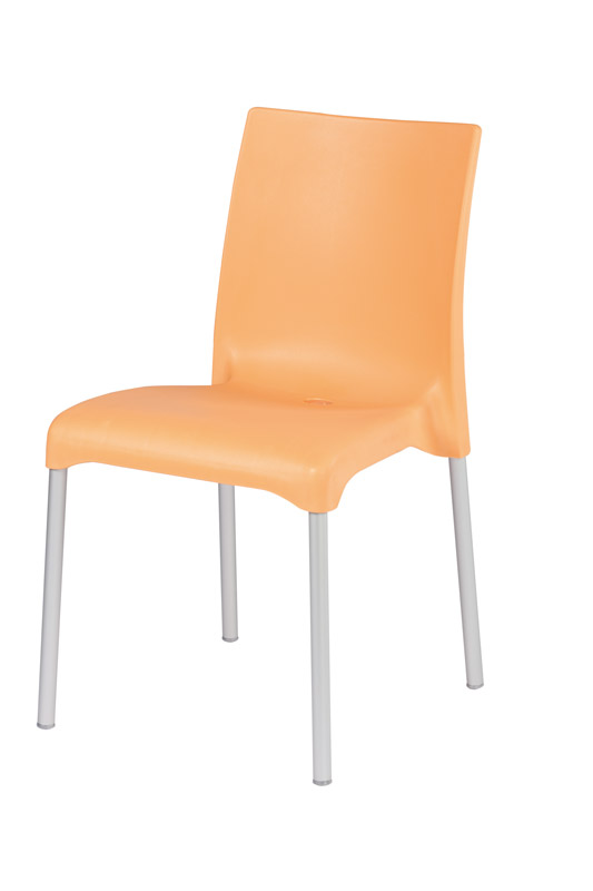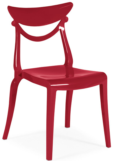 Cadeiras para interior e exterior. Estrutura metálica pintada, polipropileno, policarbonato, cromada ou inox. Assento e/ou costa em polipropileno, tecnopolímero, acrílico ou policarbonato. Disponíveis em várias cores.