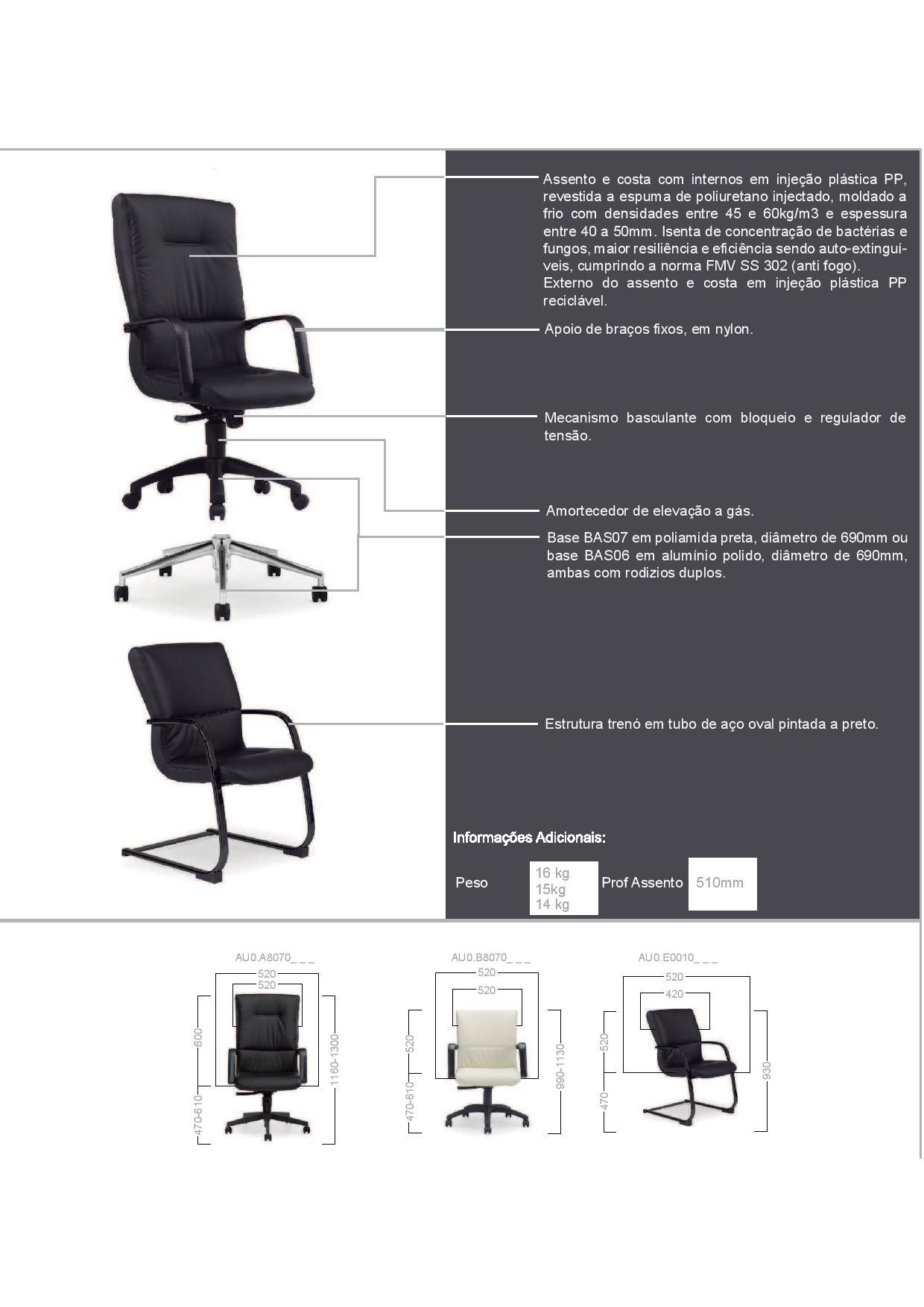 Cadeiras de direção/executivo. Mecanismo Sincron, apoio de braços, regulação em altura.