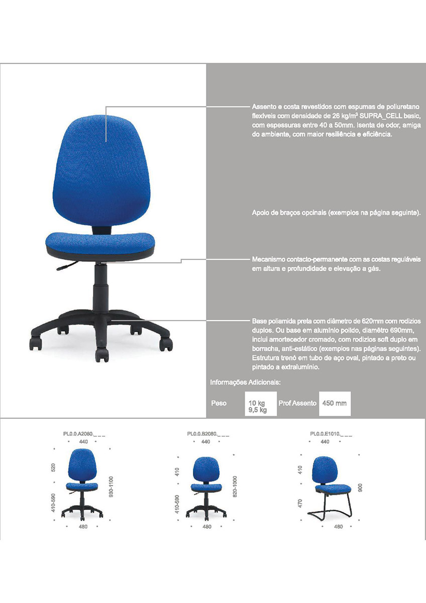 Cadeiras operativas/área administrativa. Vários mecanismos, apoio de braços, regulação em altura.
