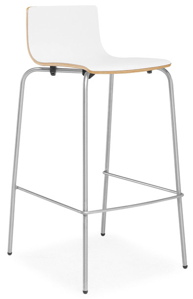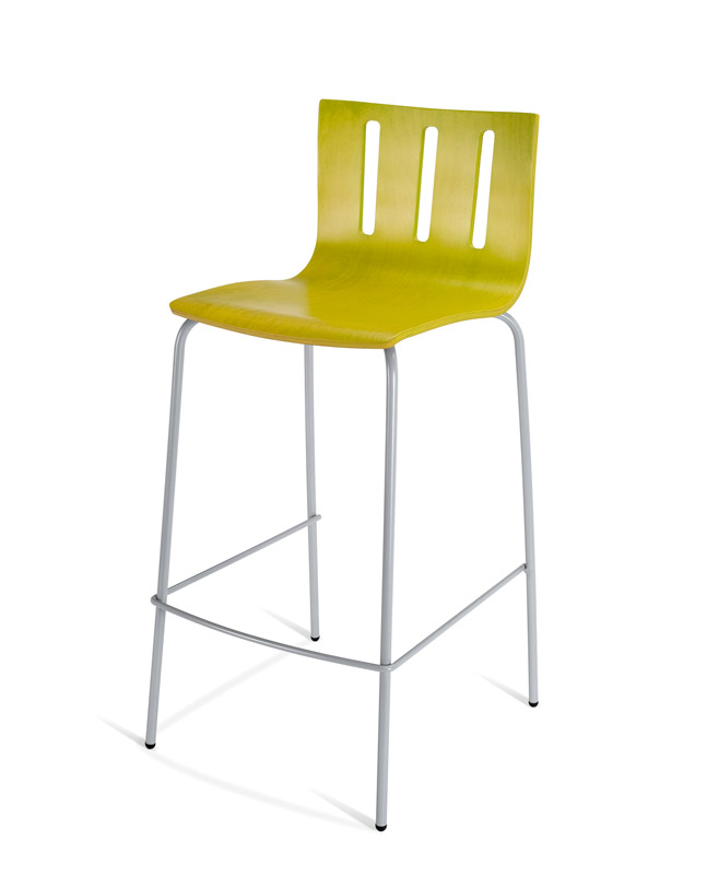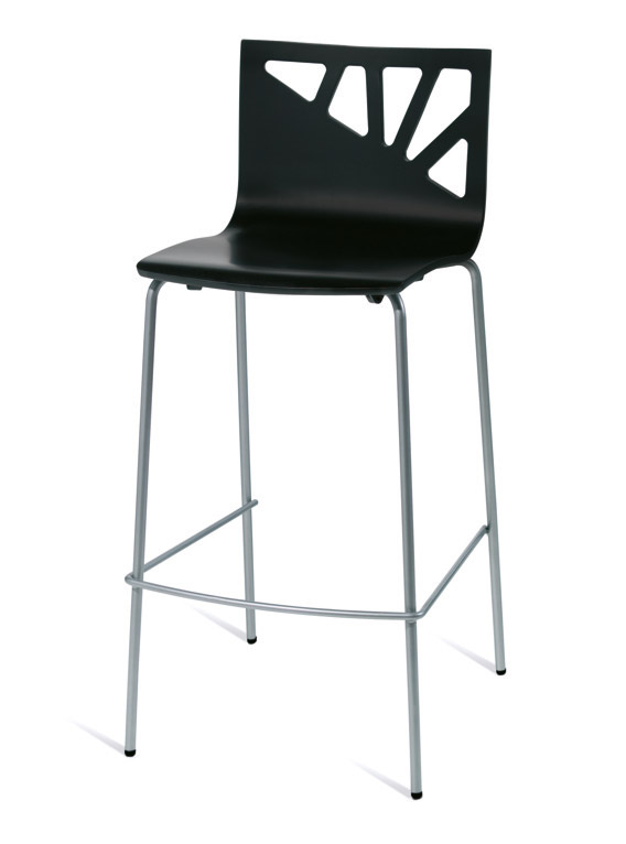 Bancos para interior. Estrutura metálica pintada, cromada ou inox. Assento e/ou costa em contraplacado faia, MDF folheado, MDF laminado, termolaminado, melamina, werzalit ou com estofo. Revestimentos e velaturas em várias cores.